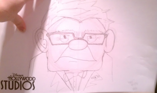 We utilized our super secret HS plan again this morning – fastpass for Toy Story Mania, Tower of Terror, Rock N Rollercoaster, ride Toy Story Mania.  We also did the Animation Academy; today we drew Carl from UP!