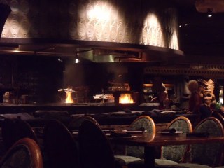 We also rode Soarin’, Spaceship Earth, and Figment again.  We were both pretty tired so we headed on back to the hotel.  We had dinner at ‘Ohana at the Polynesian at 9:30pm.  You can see Magic Kingdom from the restaurant and the fireworks were at 10pm that night, so I thought it would work out perfectly.  They brought out pot stickers (wonderful), wings (okay), and salad (pretty good).  The meats were brought out on skewers after being roasted over an open fire: steak (pretty good), chicken (good), pork (good), and shrimp (good, but still had the full shell on).  Just before dessert was to come, the fireworks started.  We had a great table, with a clear view of the castle.  Unfortunately, a man allowed his child to climb up on the window and run all over the window ledge unsupervised, so it was difficult to see or get a good picture.  The dessert was bread pudding with bananas foster sauce.  I really liked the sauce, but Ken and I agreed that the pudding was too heavy on the egg.  After dinner, it was time for bed.