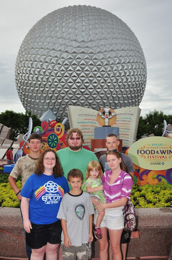 As we were walking over to ride Test Track, it started raining again. We ducked into the Character Spot just in time! A huge crowd came in right after us to get out of the rain. We got to get pictures with Mickey, Minnie, and Goofy. The rain had slowed some, but Test Track was still down, so we went on to Mission: Space. Rachel, Alex, Aidan, and I rode it while the guys waited with Amelia. The boys said it made them feel sick, Amelia was crabby, and everyone was pretty worn out so we decided to call it a day. We didn’t get to do much of the Food & Wine Festival and didn’t even see the other half of the World Showcase, but everyone had a great time. We decided to have Chinese food delivered for dinner, to finish our “trip around the world.”