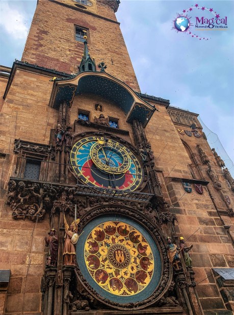 Our walking tour concluded in Old Town Square, home of Prague’s Astronomical Clock. This clock is the oldest functioning astronomical clock in the world, originally built in 1410. The clock’s dials indicate the movement of the sun and moon in the astrological signs and the annual calendar. Additionally, there is a small show preformed by statuettes each hour. I wish we had had more time to enjoy the clock, but the rain had started again so we were rushing to find shelter.